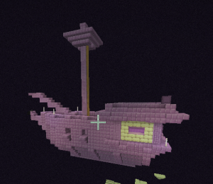 Once you are in the portal, it will send you to an End City. In the End City, you will need to find a floating ship that looks like this: